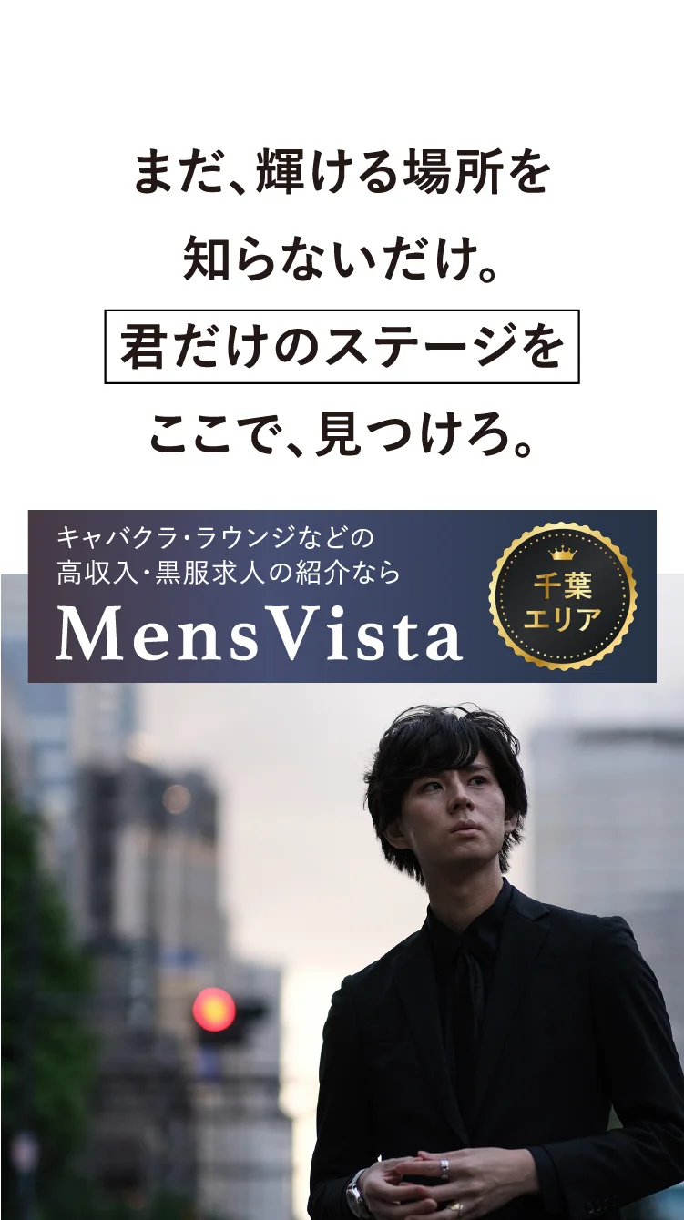 メンズヴィスタは、キャバクラ、ラウンジ、クラブなど全業種を網羅し、独自の基準で厳選した優良店の情報だけを掲載しています。数多くの選択肢の中から、あなたの「理想の給与」「勤務地」「働き方」にピンポイントで合う店舗を必ず見つけられます。